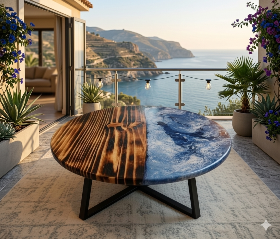 Add timeless elegance and craftsmanship to your interiors with a handmade epoxy table top that blends durability with artistic beauty.