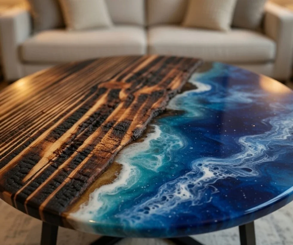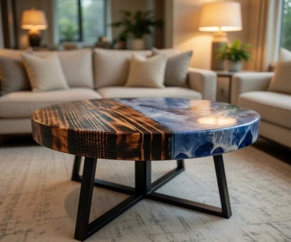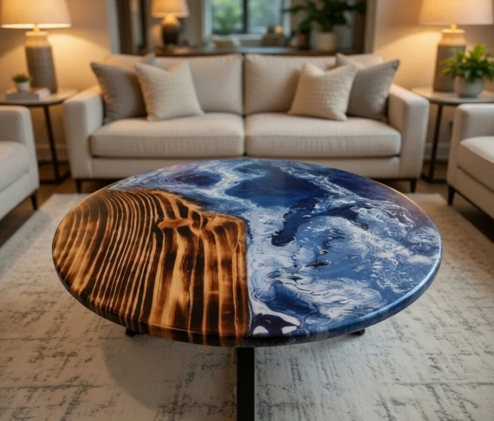Transform your space with a beautifully handcrafted epoxy wood table top, designed to bring together the warmth of natural wood and the elegance of modern resin artistry. Each piece is thoughtfully created by skilled artisans, highlighting unique wood grains enhanced with a crystal-clear, high-gloss epoxy finish—resulting in a surface that is both visually striking and truly one of a kind.